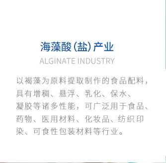 明月海藻集團專注于生產海藻酸鹽、甘露醇、山梨醇、巖藻多糖、海藻多酚、海藻生物酶制劑和其他用于食品、飲料等行業的專業原料,同時也開拓了海洋功能保健品、海洋化妝品、海洋生物醫用材料、海洋生物肥料等產業版塊,為廣泛和不斷變化的市場提供服務,幫助客戶及消費者滿足對市場和生活品質不斷提高的需求。