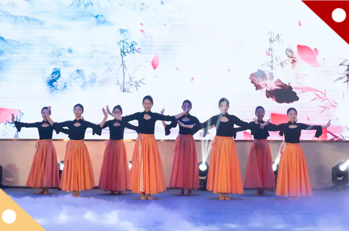 在文藝演出中,精致大氣的舞臺,絢爛多彩的燈光,內涵深厚的節目,涵蓋了光影畫、舞蹈、朗誦、合唱等形式,將明月改制之初的步履維艱、砥礪前行,以及后來的堅守初心、開拓創新的發展歷程、企業文化、社會責任等,進行了精彩演繹。整場節目,全部由明月員工自編、自導、自演,為大家帶來了久久的感動,更贏得了全場的陣陣掌聲。特別是在全場齊聲高唱《唱響明月》時,每位在場的明月人飽含熱淚、群情激昂,將整場氛圍推向最高點。整場演出,彰顯了明月企業魅力,展現了員工風采。