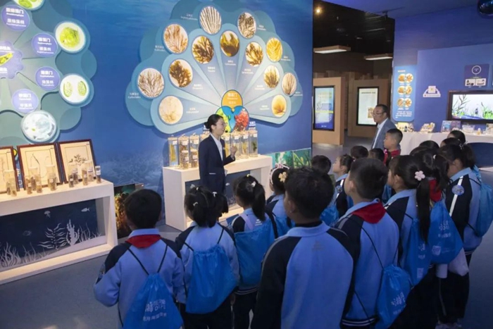 以藍色教育,助科技興國,育時代新人。青島明月海藻世界,是占地100余畝的海藻主題AAAA級景區,集中國海藻科技館、全國重點實驗室、海藻部落和酒店于一體。景區融合黨建、研發、歷史與海洋科普,通過沉浸式體驗、趣味互動,深入了解海藻與健康的奧秘,領略新質生產力與科技創新的風采。近年來,基地聚焦青少年文化需求,創新研發系列活動課程,通過校企合作與實踐教學,將基地展館變成課堂,實現青少年特色教育系統化與多元化的新發展。